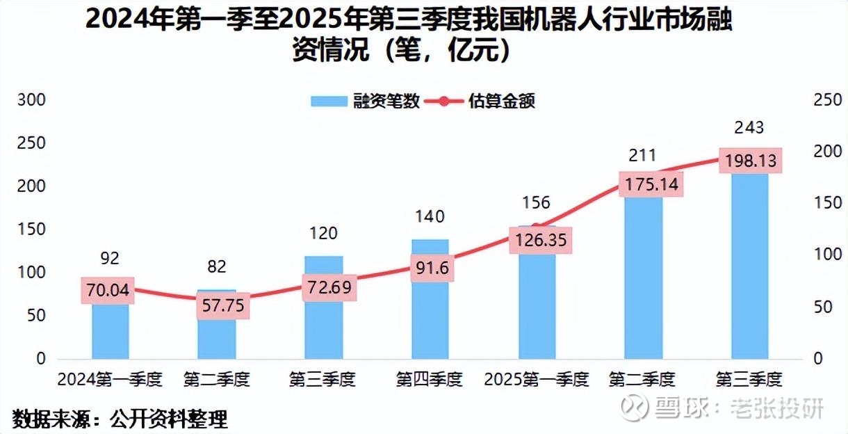 其中,第三季度我国机器人融资事件达到243笔,几乎与2024年前三季度的294齐平。