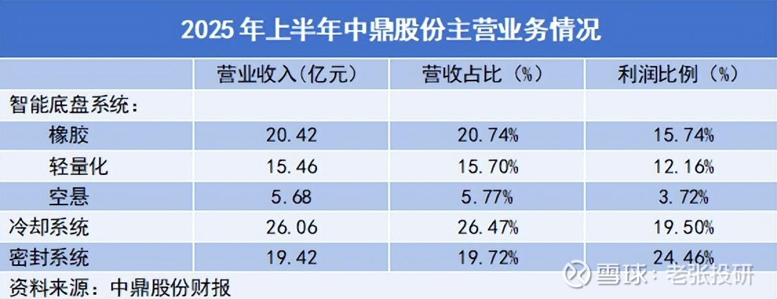 中鼎股份业务版图包括智能底盘、汽车冷却系统以及密封系统三大汽车零部件细分领域,其中智能底盘覆盖橡胶、空悬和轻量化。