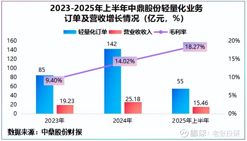 截至2025年上半年公司轻量化累计订单达55亿元,上半年公司该业务营收达15.46亿元,毛利率达18.27%,展现出营收及盈利双增长。