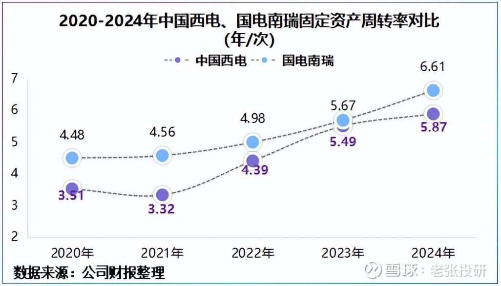 答案显而易见,中国西电意在缓解产能瓶颈。数据说话,公司固定资产周转率从2021年3.32年/次提高到了2024年的5.87年/次,近乎追平国电南瑞。
