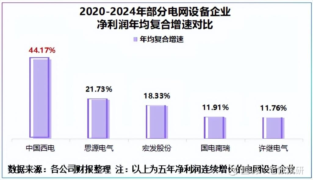 如果看净利润,中国西电几乎是业内的增速王。2020-2024年公司净利润年均复合增速高达44.17%,增速远超国电南瑞(11.91%)、许继电气(11.76%)等同行。