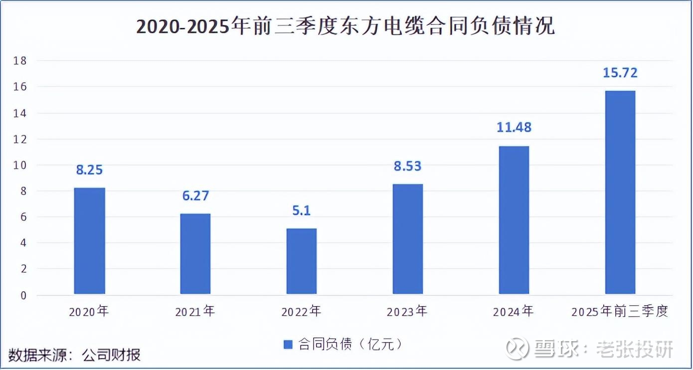 2025年三季度末,东方电缆的合同负债达到了15.72亿元,同比激增83%。