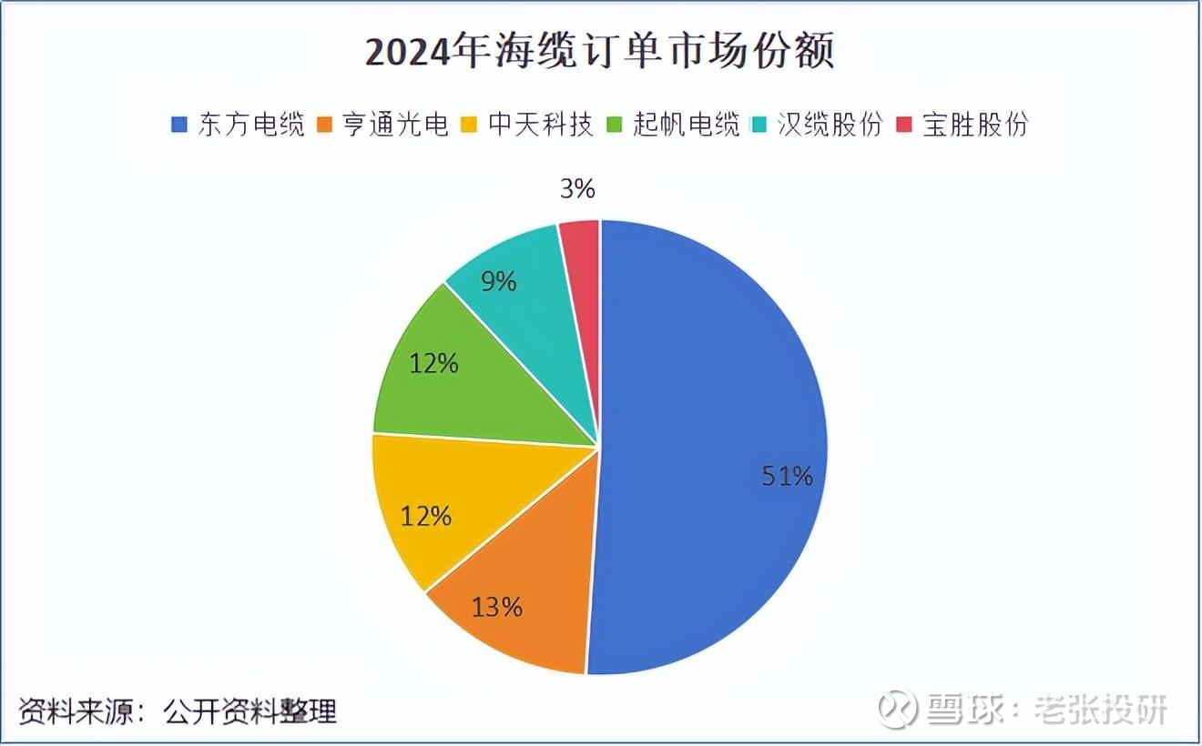 从订单金额来看,2024年,东方电缆占据了海缆市场51%的份额,稳居全国第一。