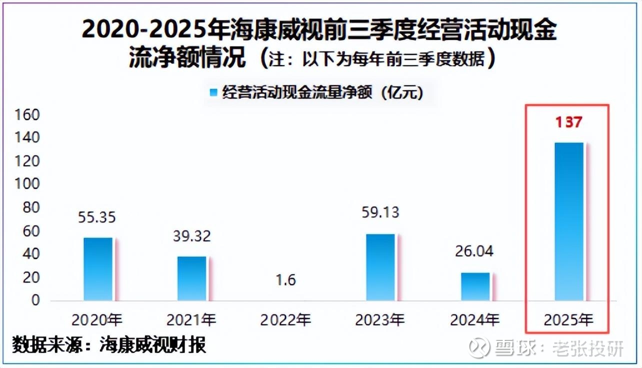 前三季度,海康威视实现净利润93.19亿元,同比跃升15%,经营活动现金流量净额同比劲增426.1%,达到137亿元,是净利润的1.47倍,盈利与成长双重狂欢。