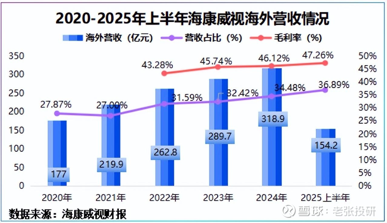 另一方面,公司海外毛利率也在显著改善:2022年公司海外毛利率为43.28%,2025年上半年该毛利率接近48%的水平线,成为海康威视新的利润洼地。