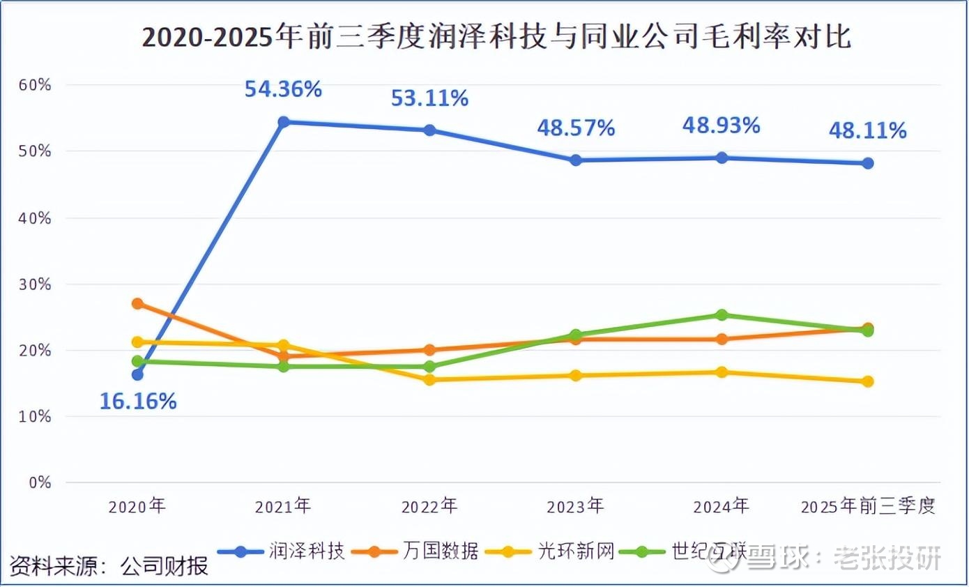 2021-2025年前三季度,公司的毛利率一直维持在50%左右,远超万国数据、光环新网等同行业公司。
