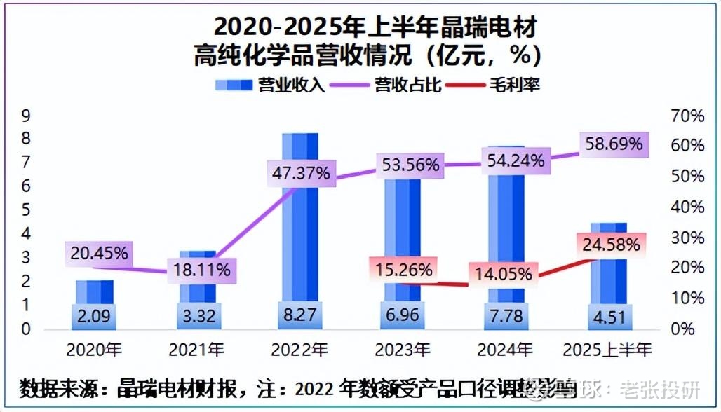同时,受产能释放影响,2025年上半年,湖北晶瑞实现净利润0.24亿元,毛利率跃升至25.02%,较2024年劲增20个百分点。