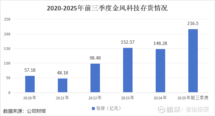 财报显示,2025年三季度末,金风科技的存货达到了216.5亿元,较年初增加了68.22亿元。其中,2025年上半年,存货中的原材料为61.27亿元,较年初增加了31.76%。