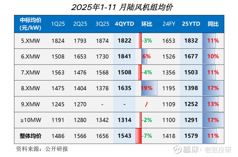 数据显示,2025年1-11月,国内陆风整机投标均价已回升至1579元/kW,相较于年初提升了11%。