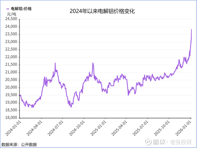 2024年1月,我国电解铝价格在19000元/吨左右徘徊,2026年1月初,这一价格已接近24000元/吨。