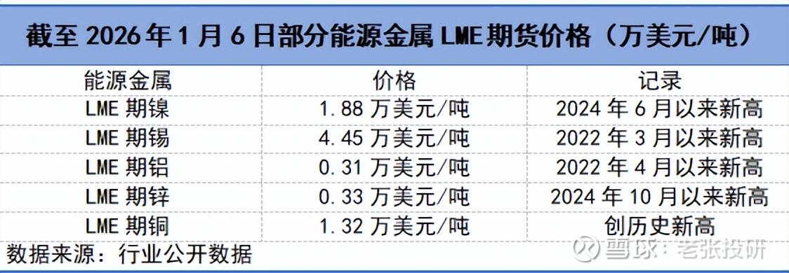1月6日,LME期锡、铝、镍价格分别创2022年3月、2022年4月以及2024年6月以来新高,依次达4.45万美元/吨、0.31万美元/吨和1.88万美元/吨。