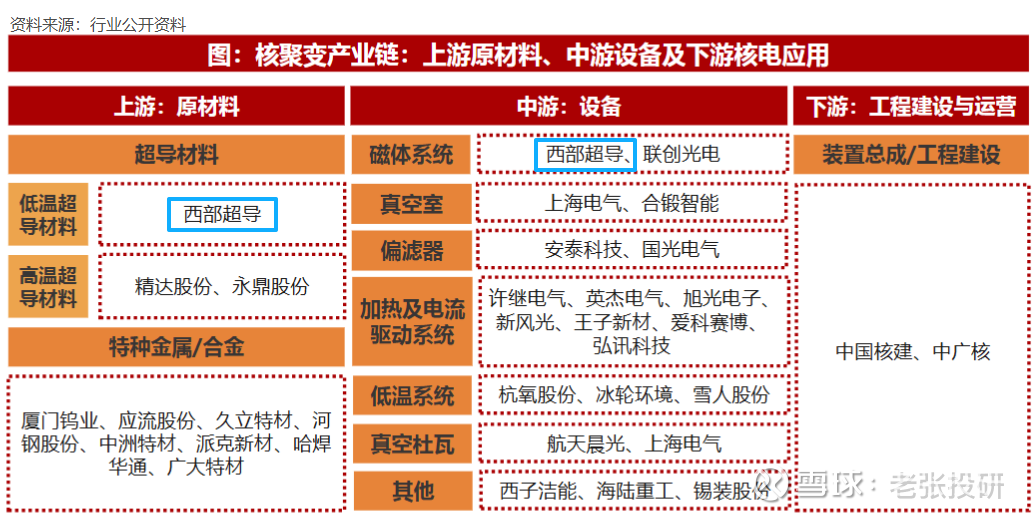 核聚变项目有三大核心环节:特种材料、核心设备与工程服务,西部超导占据前两大环节。