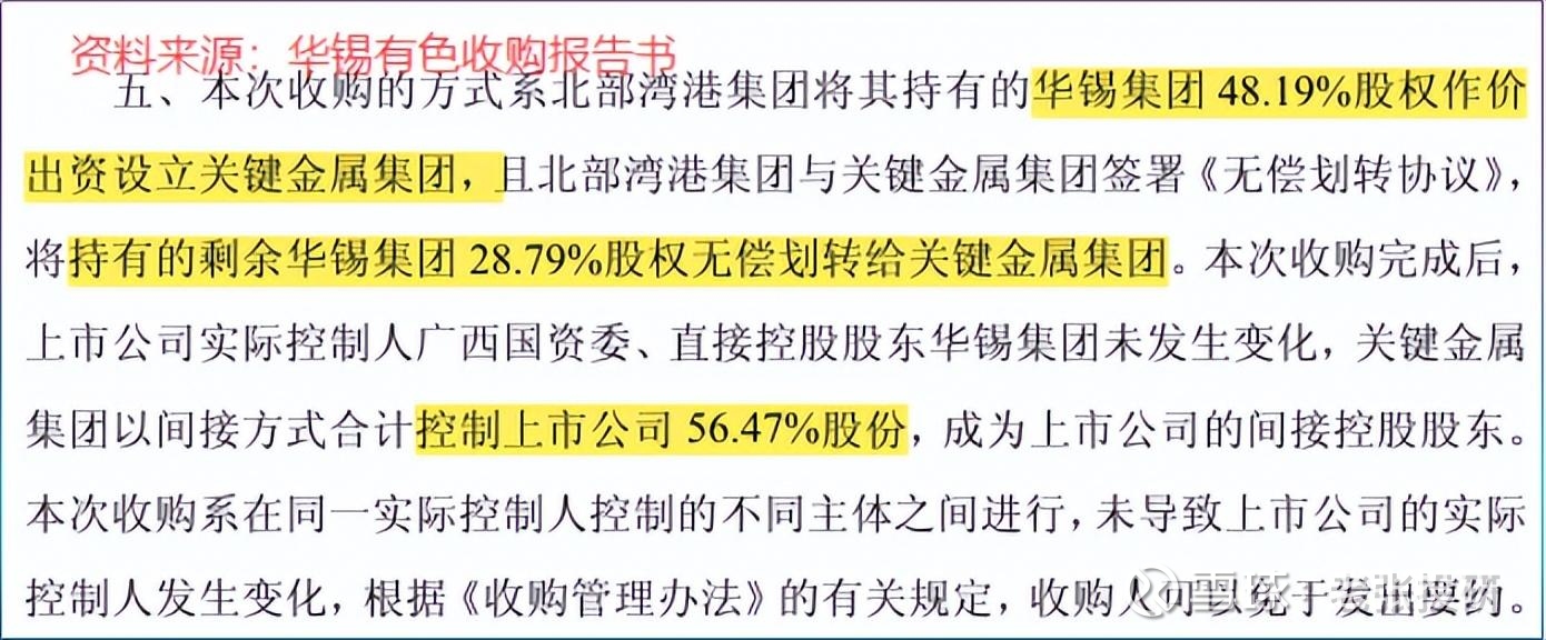 就在2026年1月24日,公司实控人以华锡有色48.19%的股权作价出资,成立广西关键金属集团,收购完成后,广西关键金属集团持有华锡有色56.47%股权,为其间接控股人。