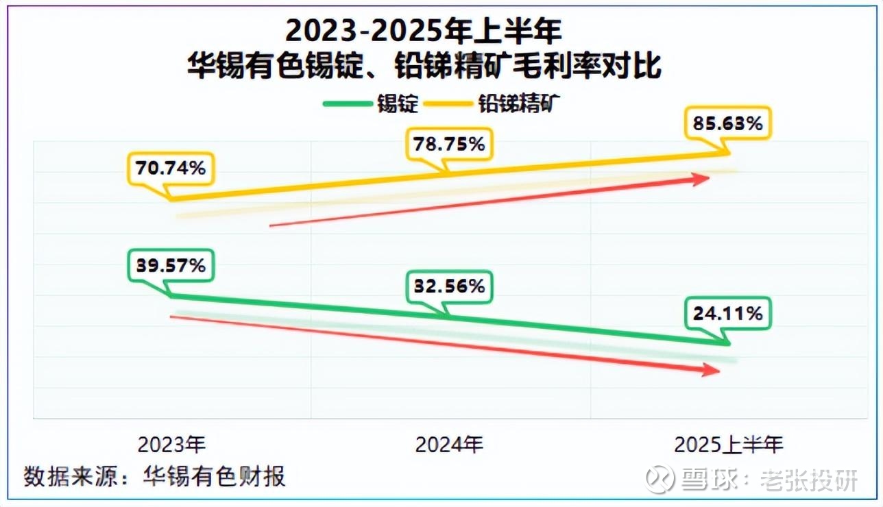 2023年以来,华锡有色锡锭毛利率从39.57%直线下滑至24.11%,相反铅锑精矿毛利率从70.74%跃升至85.63%,完美互补。