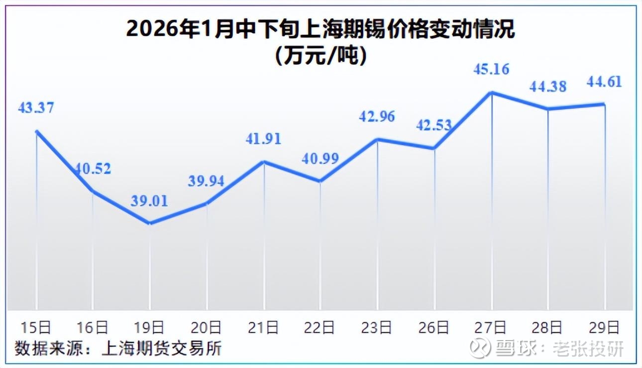 2026年开年,锡价持续上扬,1月27日SHFE沪锡已经突破45万元/吨,开年涨幅已超21%。