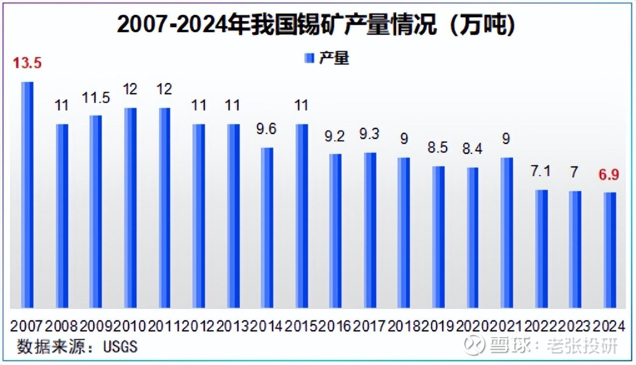 2024年,我国锡储量约100万吨,单是以上三家企业就占到超80%的份额,近乎垄断了我国锡矿产的供给。