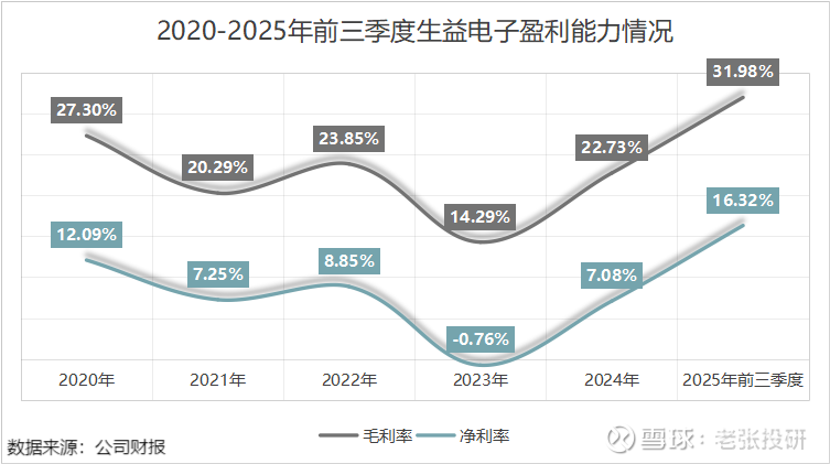 2023-2025年前三季度,随着公司高附加值产品占比的提高,公司的毛利率从14.29%提升至31.98%,带动净利率从-0.76%提升至16.32%。