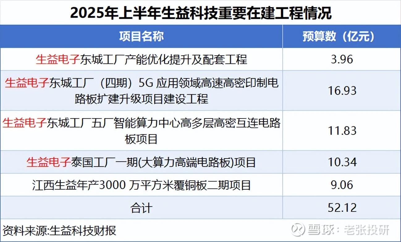 2025年上半年,生益科技的5项重大在建工程中,有4项来自子公司生益电子的产能优化与扩建,且集中在5G高速及算力高多层板领域。