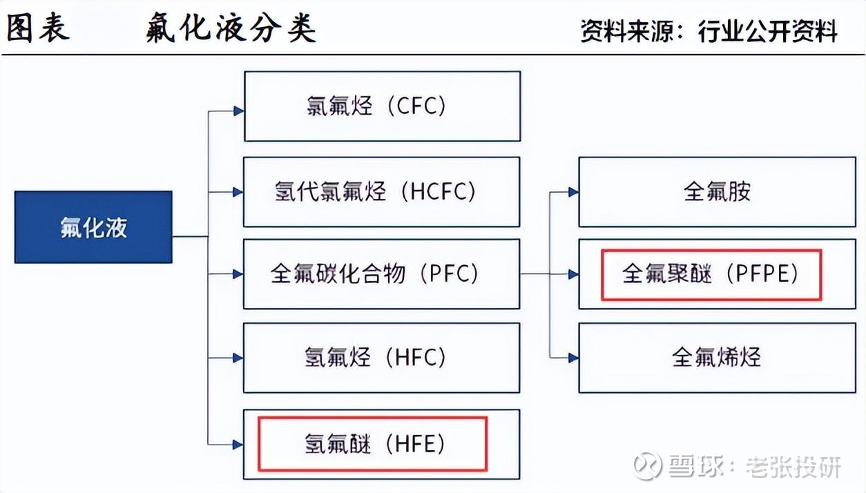 具体来说,氟醚(HFE)和全氟聚醚(PFPE)常用于浸没式液冷方案中,如果把液冷系统比作一个人的话,氟化液就是血液,起到热量传输的作用。