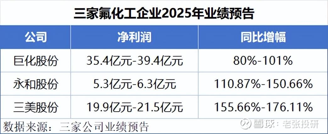 一边是,氟化工板块在2025年交出一份完美的成绩单!根据业绩预告,巨化股份、永和股份、三美股份等企业在2025年实现净利润大幅增长。