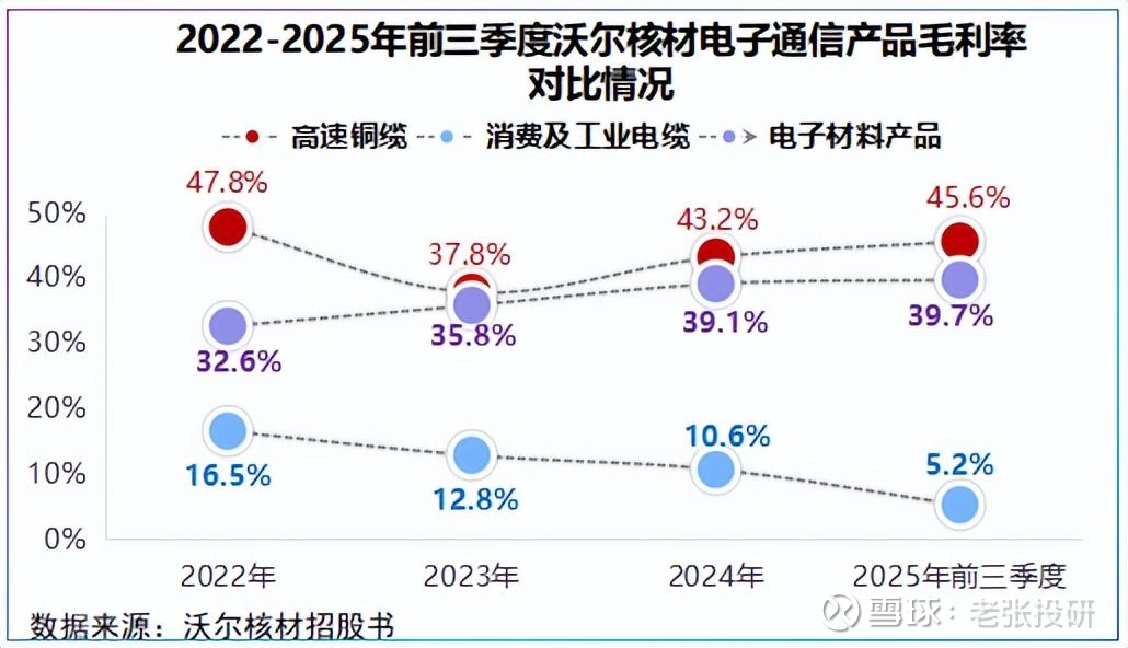 2022-2024年,公司高速铜缆产品平均毛利率约43%,2025年前三季度达到45.6%,同比提高了7.2个百分点。