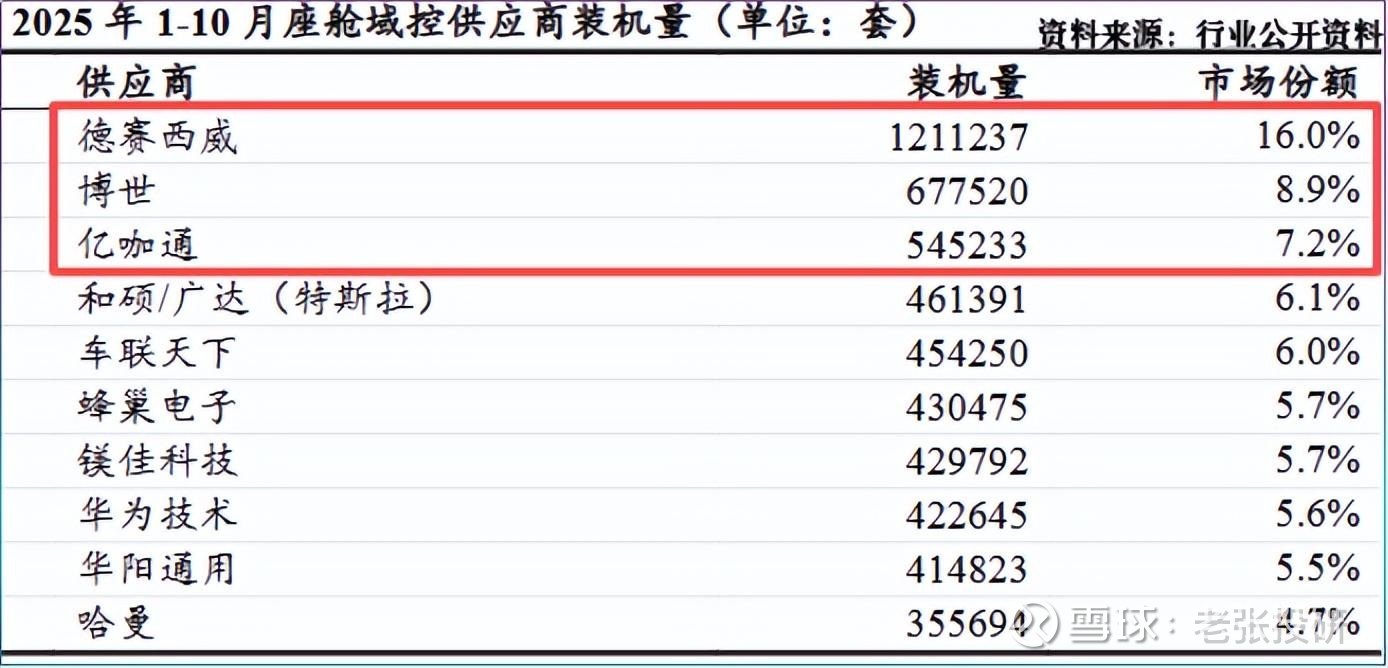 2025年1-10月,德赛西威座舱域控装机量121.12万台,超2024年全年装车量,市占率达16%,高出博世7.1个百分点。