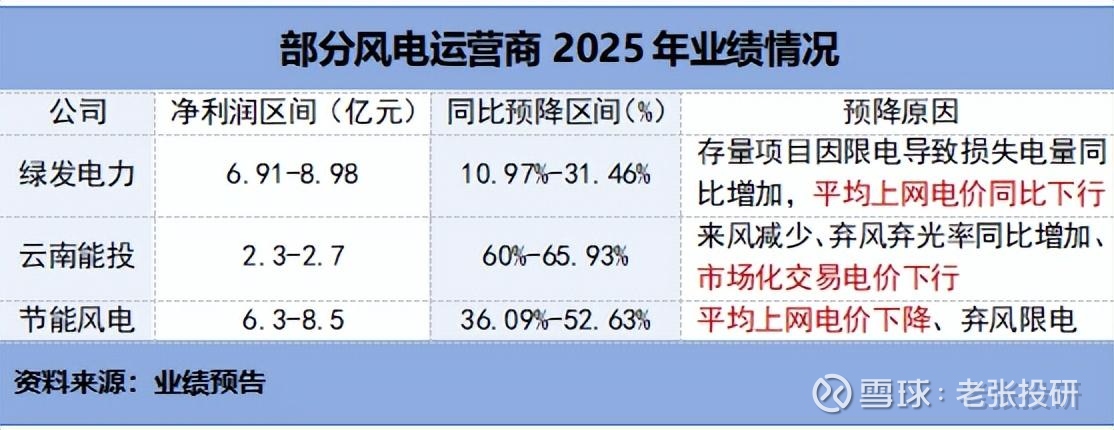 2025年,绿发电力、云南能投、节能风电等风电运营企业净利润预计同比下滑可达30%以上。