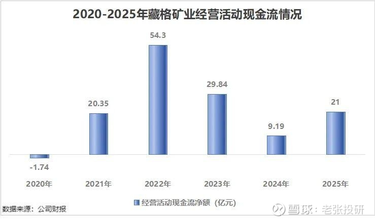 剔除投资收益的影响,氯化钾与碳酸锂这两大并表业务依然贡献了稳定的经营现金流。2025年,藏格矿业的经营活动现金流为21亿元,同比增长128.49%。