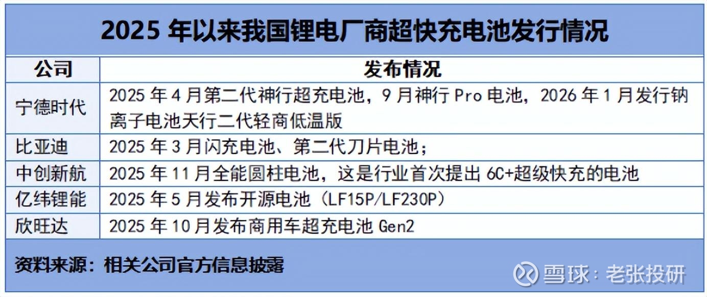 以宁德时代为例,2025年其相继推出二代神行超充电池、神行Pro电池、骁遥双核电池、钠新电池等新产品,推动快充渗透率快速提升。