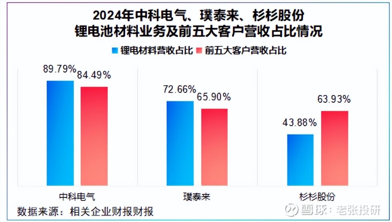 根源在于客户结构和产品结构,2024年,中科电气前五大客户营收占比高达84.49%,璞泰来、杉杉股份均不到70%,客户相对集中,削弱了公司的议价能力。