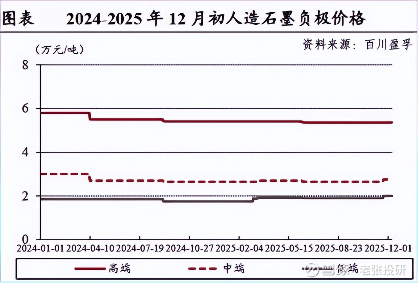 2026年2月,中端人造石墨负极材料主流价格2.3-3.2万元/吨,高端4.2-6.5万元/吨,涨幅远不及磷酸铁锂和六氟磷酸锂。