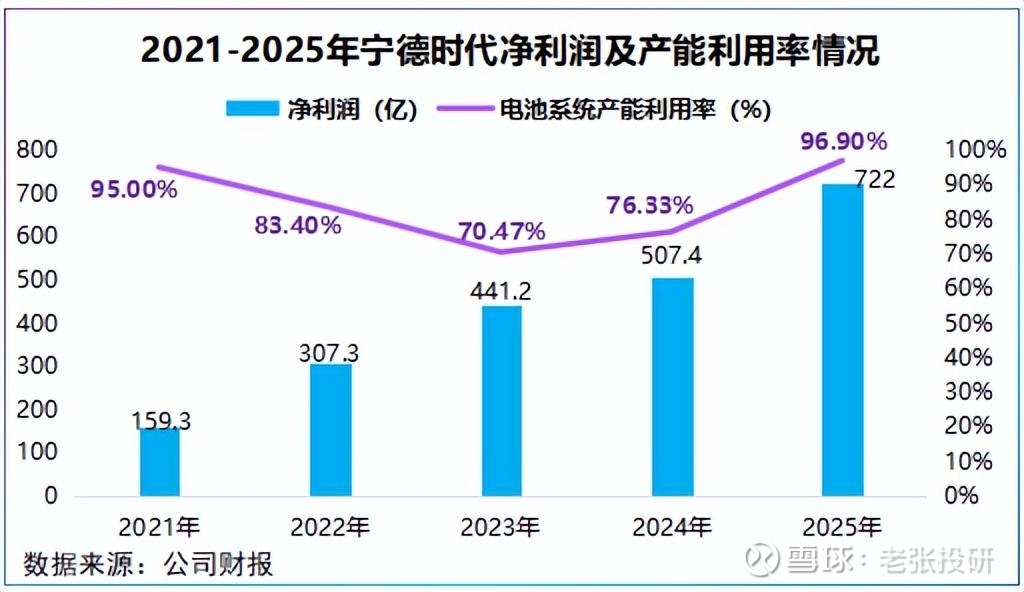 2025年,宁德时代赚了722亿元,平均每天净赚1.98亿元,而这归功于产能利用率的提升,2025年全年高达96.9%,单位固定成本被大幅摊薄。