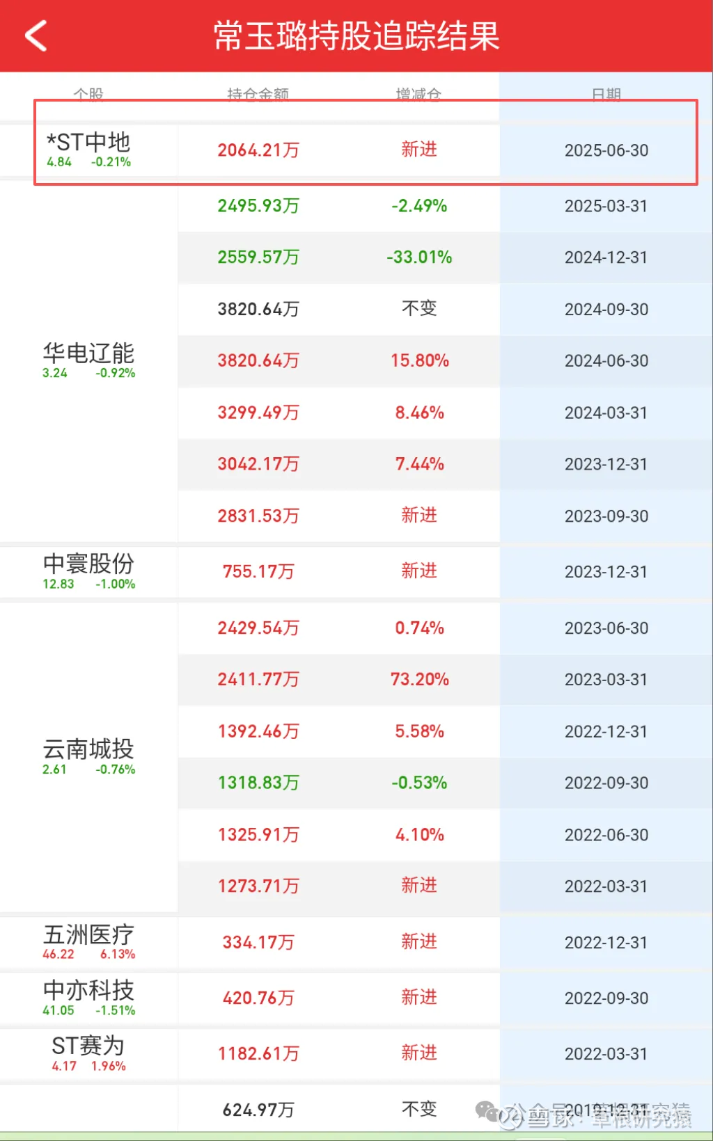 首先是常玉璐,买了两千多万的中地,中报新进的十大股东,看起来很犀利: