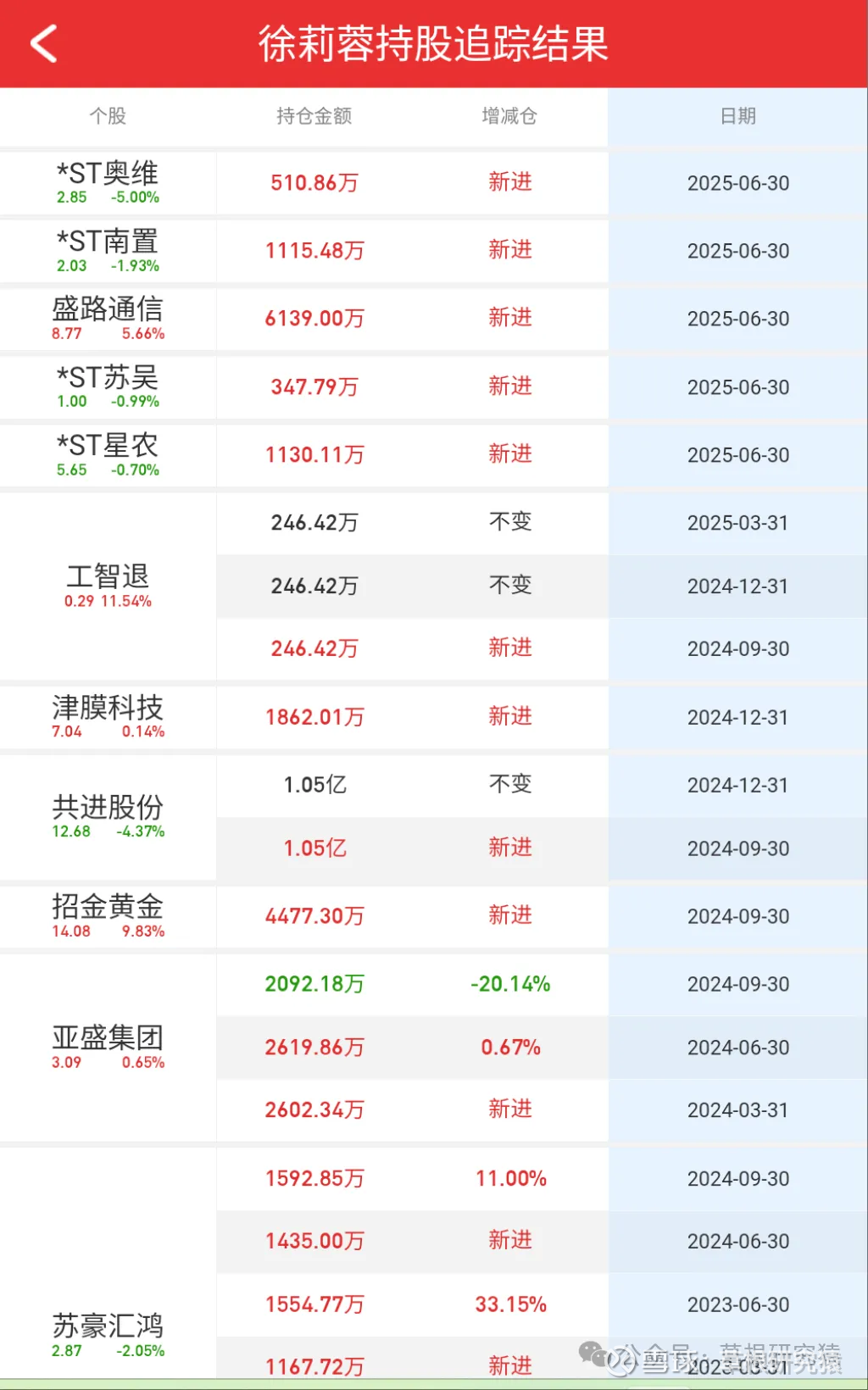 徐莉蓉看起来也是专门做ST的,买了奥维、南置、星弄、苏吴这几个,踩雷了苏吴,奥维有一波行情,然后也买到过退市股: