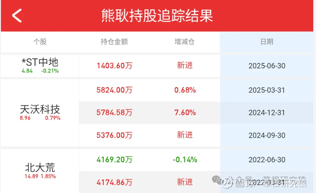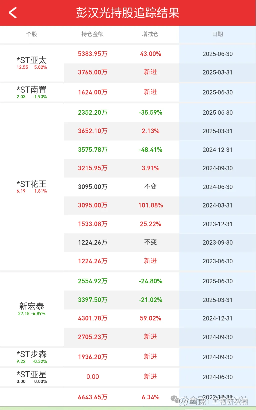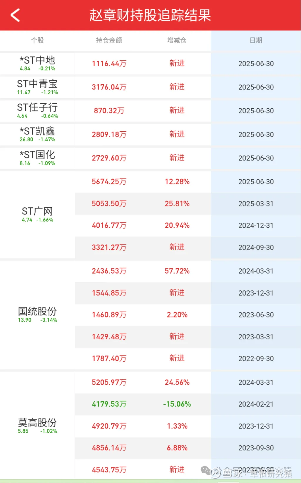罗利看起来专门做st的,持有中地、凯鑫、中青宝、任子行,如下: