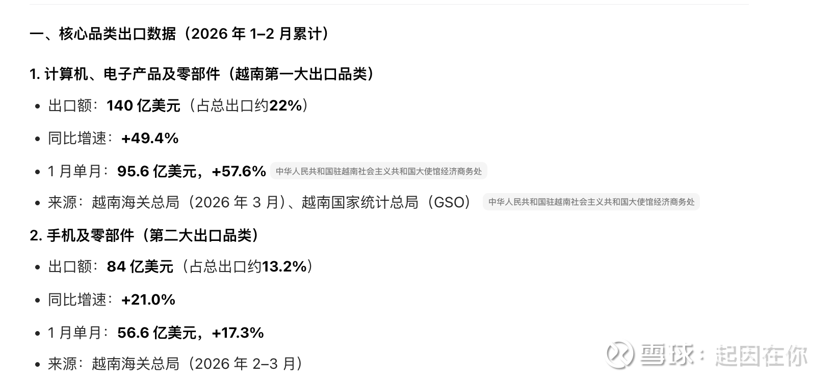 从越南的1,2月份出口数据,看立讯核心业务所在行业一季度可能得业绩会怎么样。