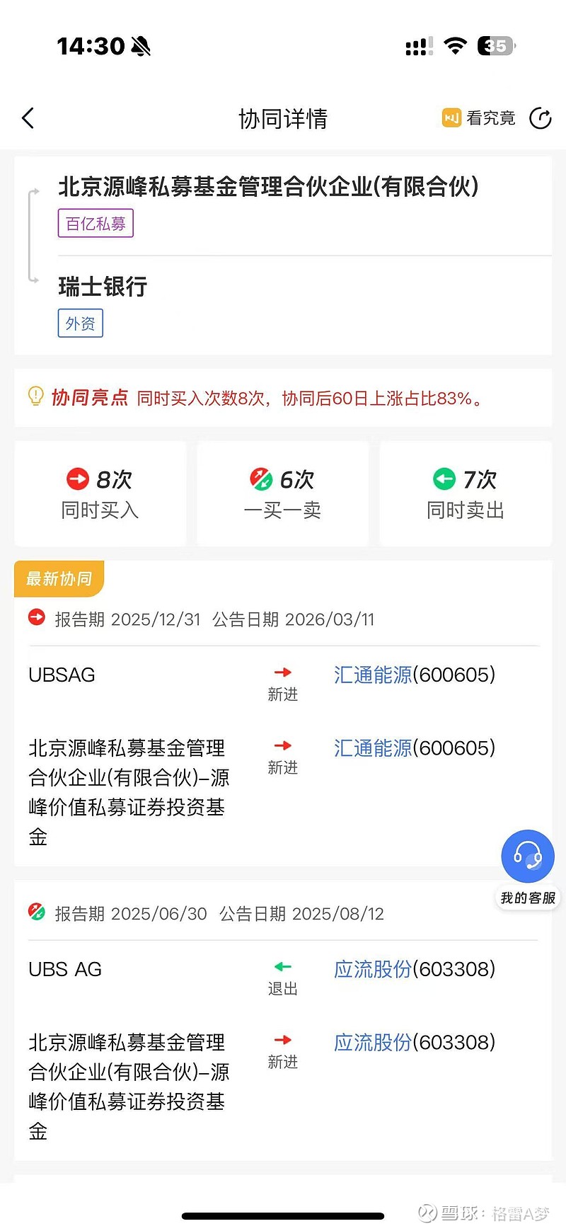 源峰私募和瑞银又一次出现同时买入,此次买入的是