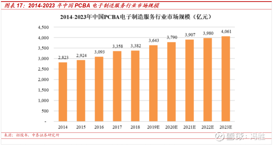 根据灼识咨询,中国 PCBA 电子制造服务行业的市场规模预计为4061亿元,2014-2023年复合年增长率为 4.1%。