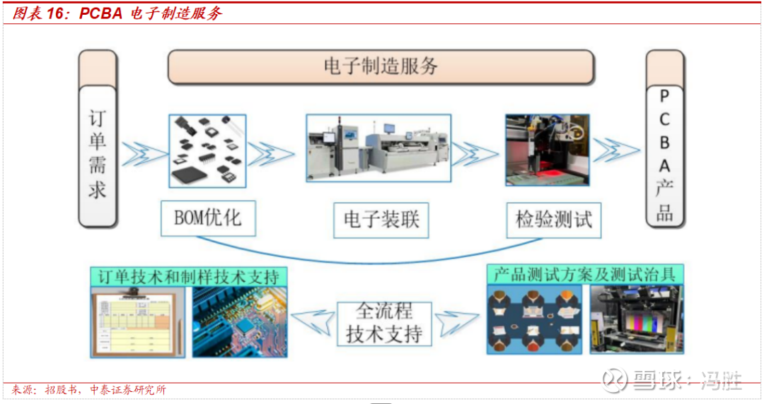 ◼ PCBA电子制造服务提供一体化服务。传统的电子装联厂通常由客户提供 PCB 及元器件等原材料,仅提供电子装联服务,随着电子行业发展日新月异,下游终端产品的需求不断向个性化、多样化发展,电子行业专业化分工进程不断深化使单纯的电子装联服务无法满足下游客户的需求。公司 PCBA 电子制造服务流程包括前端 BOM 优化、中端电子装联、后端检验测试以及全流程的技术支持服务,一体化的服务体系可确保公司为客户提供优质的 PCBA 控制板产品。