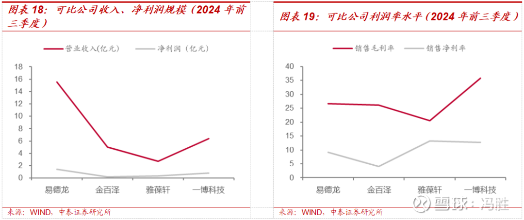 ◼竞争格局:公司收入体量较小,盈利能力较强。目前行业内相关公司大都从事包含 PCBA 电子装联业务在内更为综合的电子制造服务业务,如易德龙、光弘科技、金百泽等,与可比公司相比,公司PCBA相关收入规模相对较小,但公司收入增长迅速,正在持续缩小与其他公司的差距,且公司盈利能力较强,2024年前三季度毛利率、净利率分别达到20.6%和13.3%,其中净利率水平为可比公司最高。此外,公司在制程能力、贴装精度等指标处于行业领先位置。