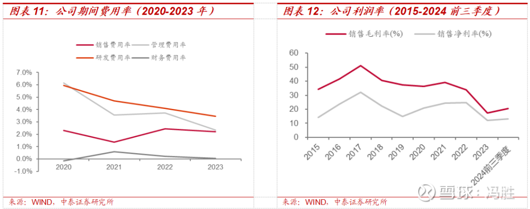 ◼公司利润率出现波动,费用率管控能力较强。2023年公司毛利率降至17.52%,同比-16.31pct,主要系原材料、人工成本增加,全球消费电子需求较低迷,行业产品销售单价也受到市场需求影响。2024前三季度,毛利率回升至20.6%,同比+3.72pct。期间费用率来看,2021-2024前三季度分别为10.2%、10.5%、8.1%、8.2%,体现了公司费用管控能力较强。