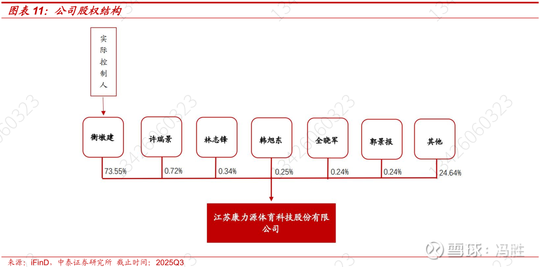 ◼公司营收整体稳定增长,近年来业绩亮眼。康力源的股权结构相对集中,截至2025Q3,公司第一大股东为衡墩建,持股数量为49,036,400 股,持股比例达73.55%,股份性质为限售流通股。许瑞景为公司第二大股东,持股比例为0.72%,其股份部分为流通A股,部分为限售流通股。