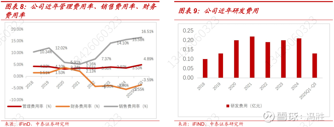 ◼成本控制能力较好,管理、财务费用率总体呈下降趋势。公司费用控制整体较好,销售费用率自2021年起呈上升趋势,2025Q1-Q3为16.51%,主要系公司业务调整,发力跨境电商渠道拓展,同时加强公司自主品牌线上直销业务推广,造成销售费用率的提高。公司现金流充裕,财务费用率由2019年1.53%下降至2025Q1-Q3年的-3.59%。