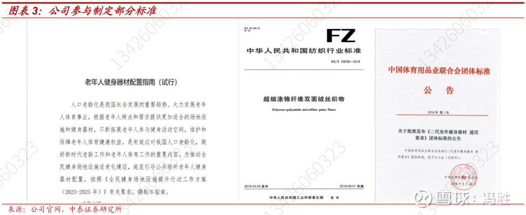 ◼公司积极参与多项行业标准的制定工作。2025年,国家体育总局正式印发的《老年人健身器材配置指南(试行)》,康力源是参与编制的20余家行业头部企业之一。此外,公司还参与并完成已参与并完成《智慧化健身场所技术规范》(标准编号:T/CSGF004—2018)、《二代室外健身器材通用要求》团体标准(标准编号:T/CSGF001—2018)、《走步机》团体标准(标准编号:T/CSSGA1023—2019)、《小蹦床》团体标准(标准编号:T/CTSAA002—2021T/CSGF014—2021)、《中小学体育器材和场地第一 部分:体育器材的通用要求和试验方法》国家标准(标准编号: GB/T19851.1-2022)等行业标准的制定,正在参与《固定式健身器材》《哑 铃和壶铃》《健腹轮》《老年人健身器材配置指南》国家标准等行业标准的 起草。作为国家级高新技术企业和国家知识产权优势企业,康力源拥有境内 外各类专利241项,其中发明专利8项,与智能产品相关的软件著作权17 项,这为其参与行业标准制定提供了坚实的技术支撑。