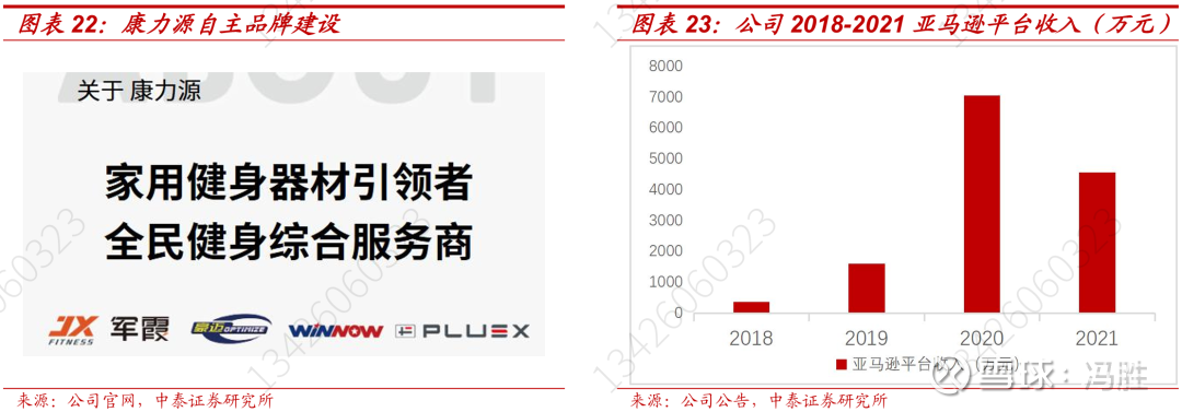 ◼康力源早期海外业务以ODM/OEM为主,利润空间受限于代工费率。公司自2018年开始发展跨境电商业务,依托“WINNOW”等自有品牌,亚马逊平台开设店铺面向美国、欧洲等终端客户销售产品,2023年跨境销售额突破2亿元。在跨境电商业务的加持下,公司的品牌占比也由33.51%上升到58.62%,公司精准切入欧美中低端家用健身市场,同时开拓东南亚、中东等新兴市场,提升品牌认知度。2018-2020年公司在亚马逊平台收入整体呈上升趋势,2020年达7062.45万元,海外业务成绩亮眼。