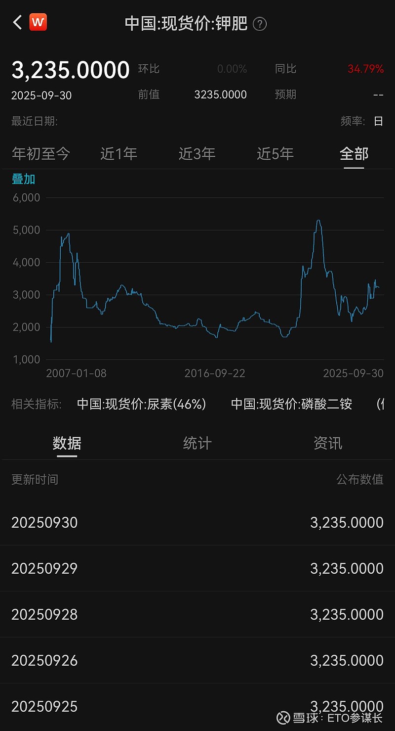 有色、贵金属继续强势上涨,金银期货双双新高,在美联储重启降息周期的趋势下,金银和其他金属、矿产、农产品的价值重估之路已经开始。供需偏紧的钾、磷、稀土等的上涨刚刚开启,配合国内五年新低的库存、秋播用肥旺季的到来,钾肥企业将迎来营收利润和市值三增长📈坐稳扶好