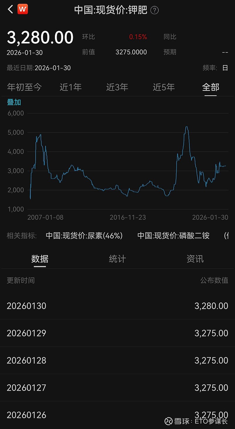 钾肥现货价格小涨至3280元每吨,港口库存也略增1万吨至249万吨。春播在即,小麦玉米价格继续维持强势,肥料需求增长可期。