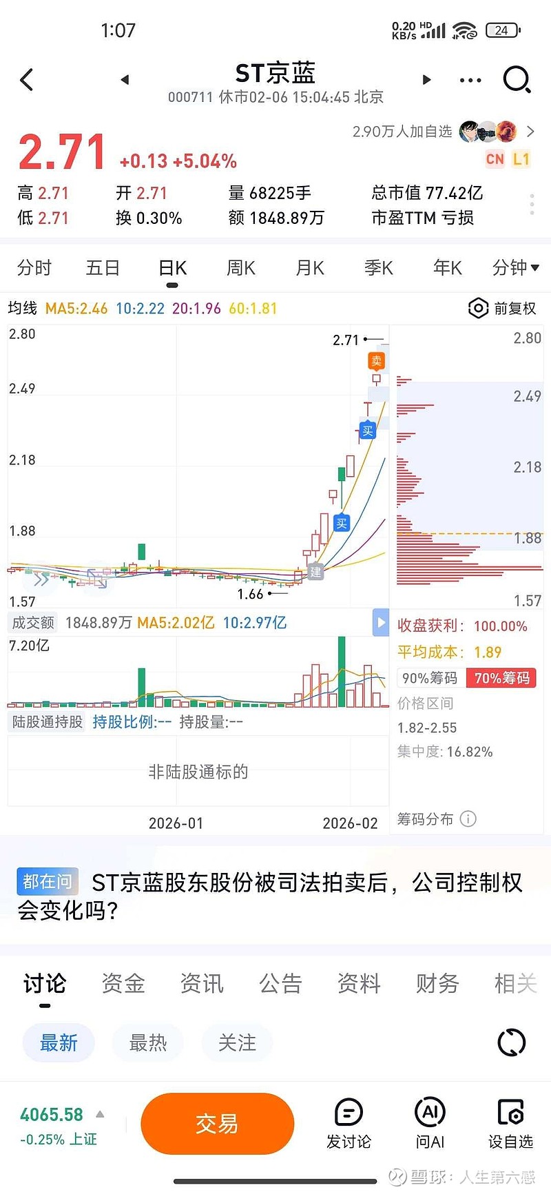 $ST京蓝(SZ000711)$