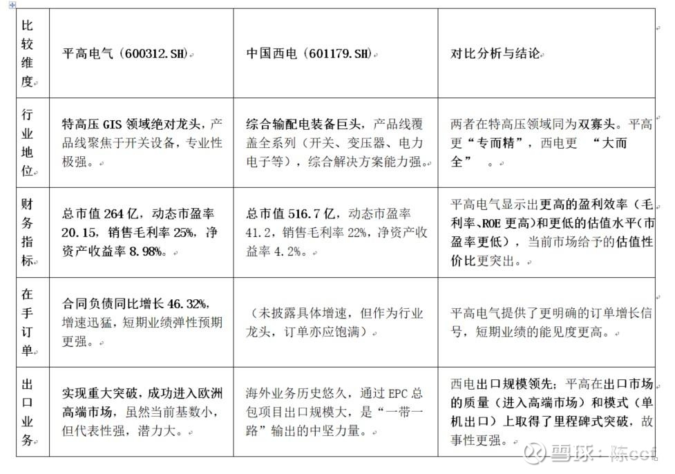 为更清晰地定位平高电气,我们将其与另一巨头中国西电进行关键维度的对比: