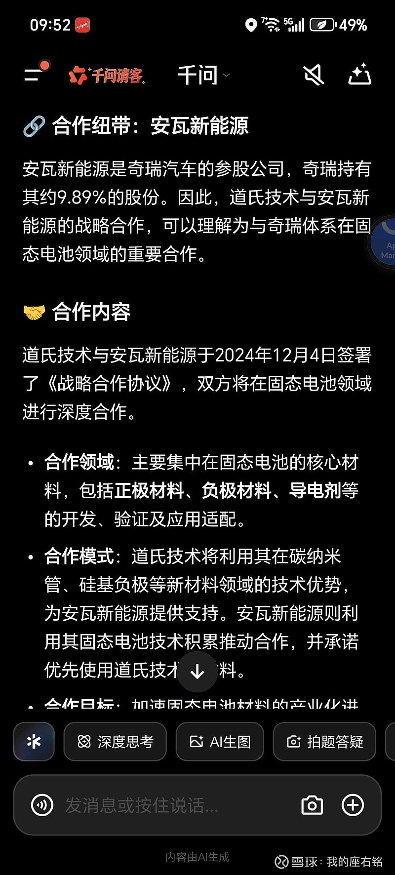 战略合作,而安瓦是奇瑞的参股公司,也是奇瑞固态电池的固态电池平台!道氏供货安瓦,是直接利好!